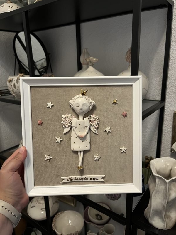 €58.00Handmade frame with a handmade angel living in it, protecting each of us. This angel is made of white Italian clay, covered with clear glaze, gilded. This is a great gift option for girls, ladies, women. And a wonderful gift for Christening, Christmas or another important occasion with a wish for angel protection at every step, every moment.