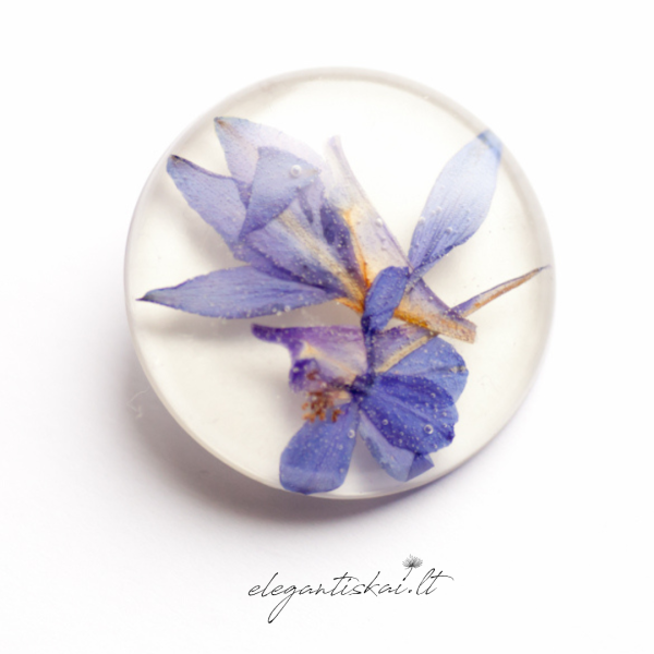 €20.00Minimalist design handmade brooch with real plants from Lithuanian meadows – cornflowers. These original handmade jewelry are made of jewelry resin, are extremely light and unbreakable. Only natural plants are used for jewelry production: flower blossoms, leaves, berries and other plant parts.