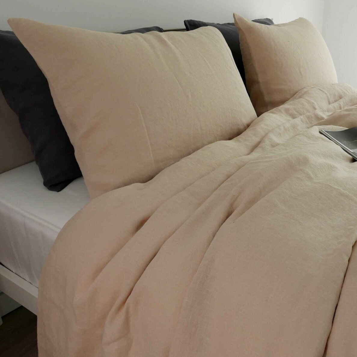 100% linen bedding is pleasant to the skin, it will decorate your bedroom and give you an exceptional feeling of sleep. Breathable, soft and durable linen fabric ensures a peaceful sleep all year round: cools in summer, warms in winter. Natural linen has properties that inhibit the growth of microbes, dust mites and bacteria do not accumulate in such bedding, so it is suitable even for sensitive or allergic skin. Linen perfectly passes air and absorbs moisture, so the body remains dry, does not cause sweating. Natural linen bedding is a time-tested luxury.