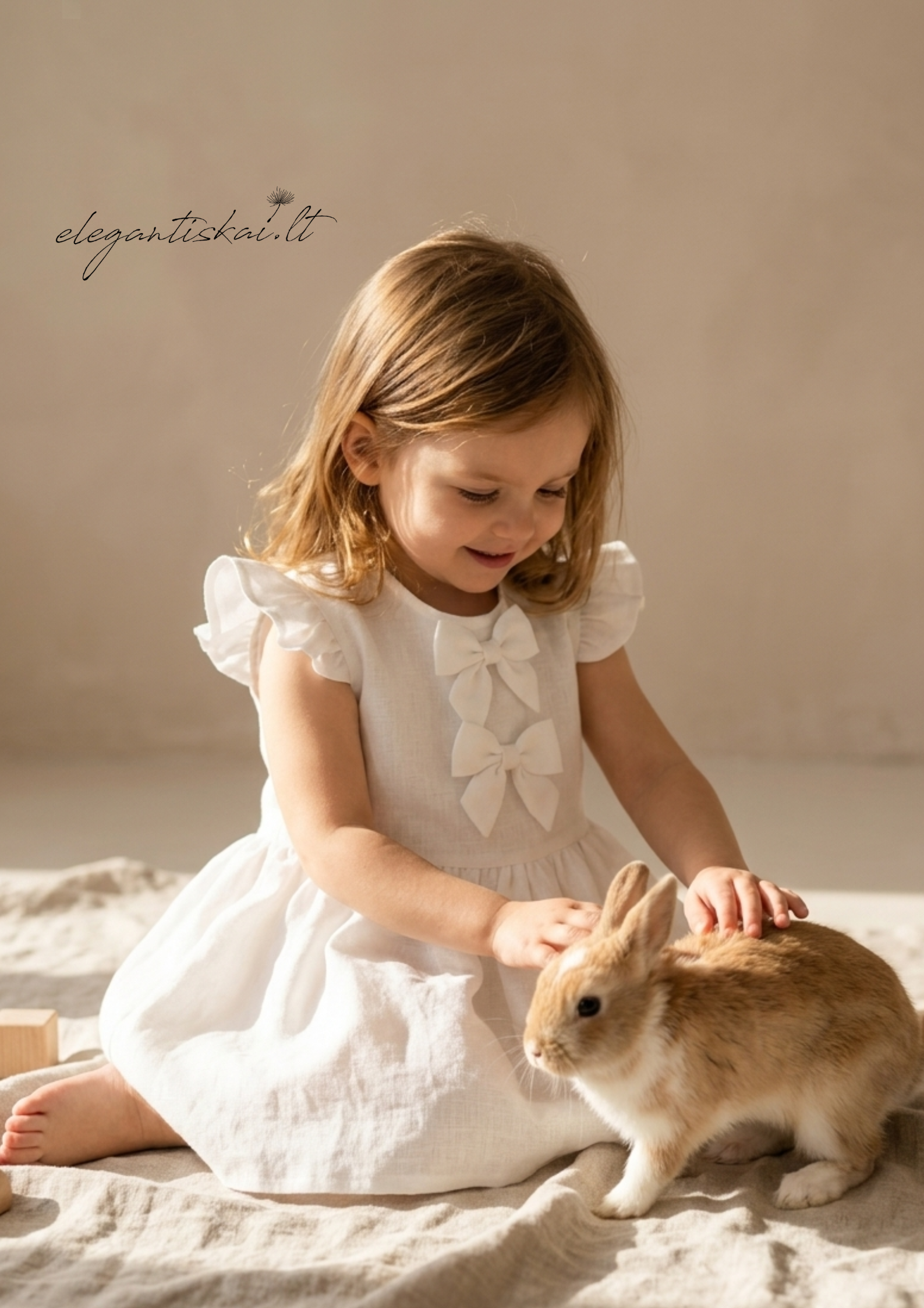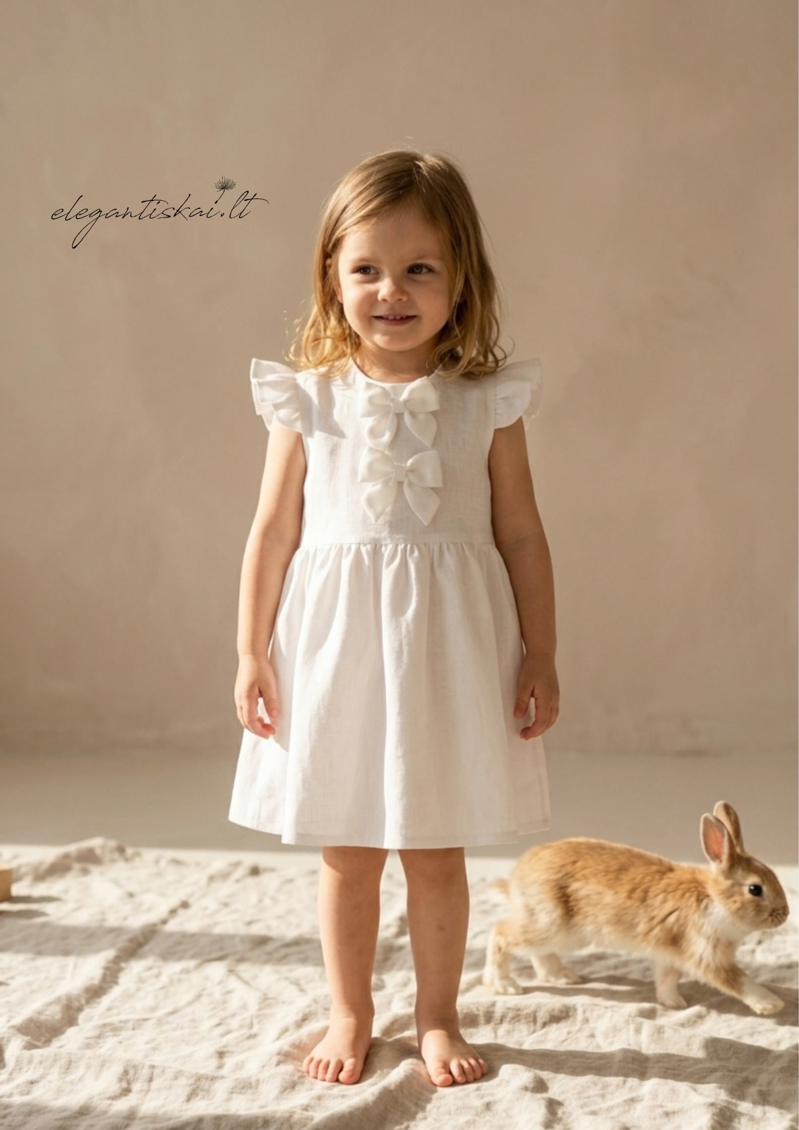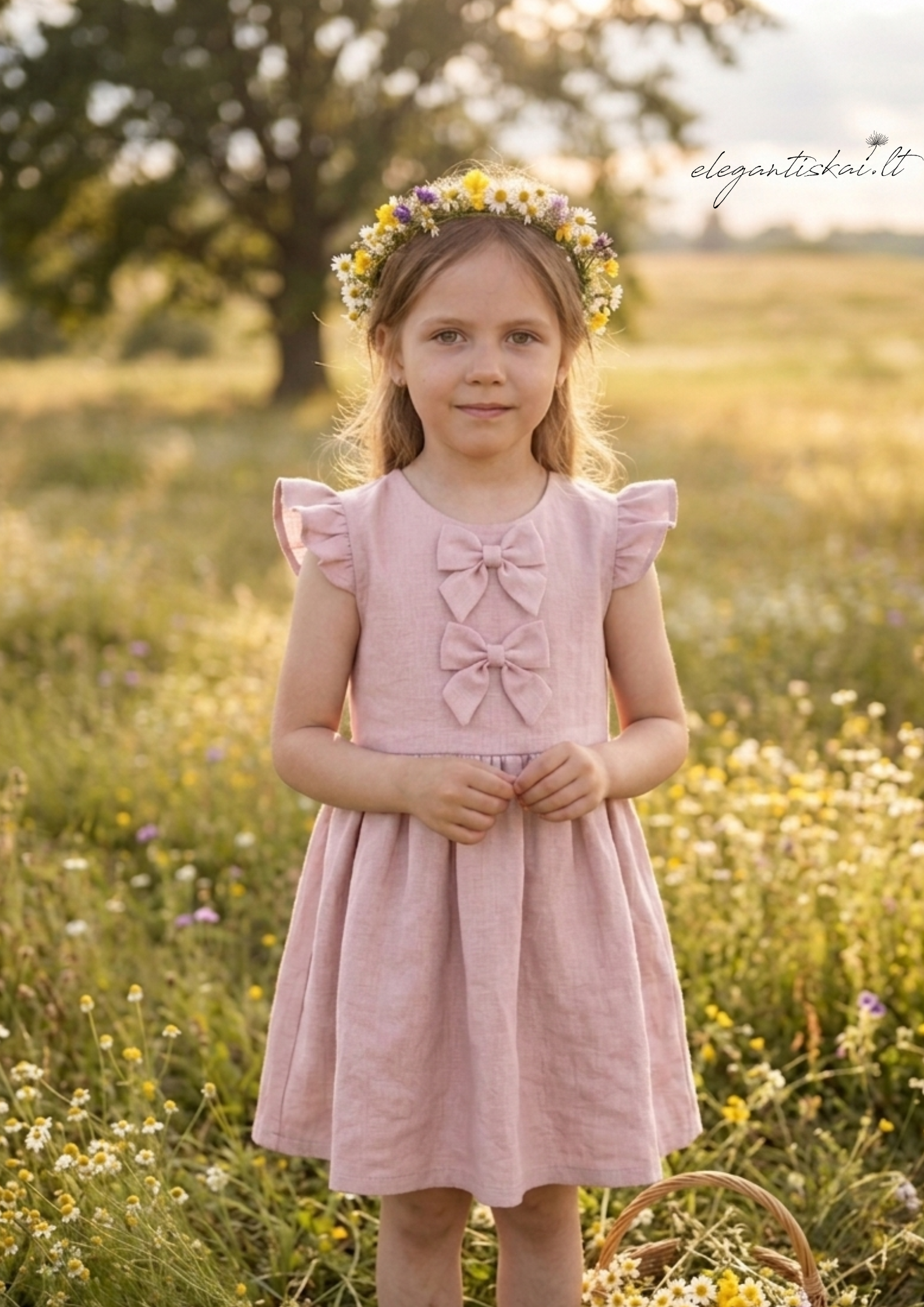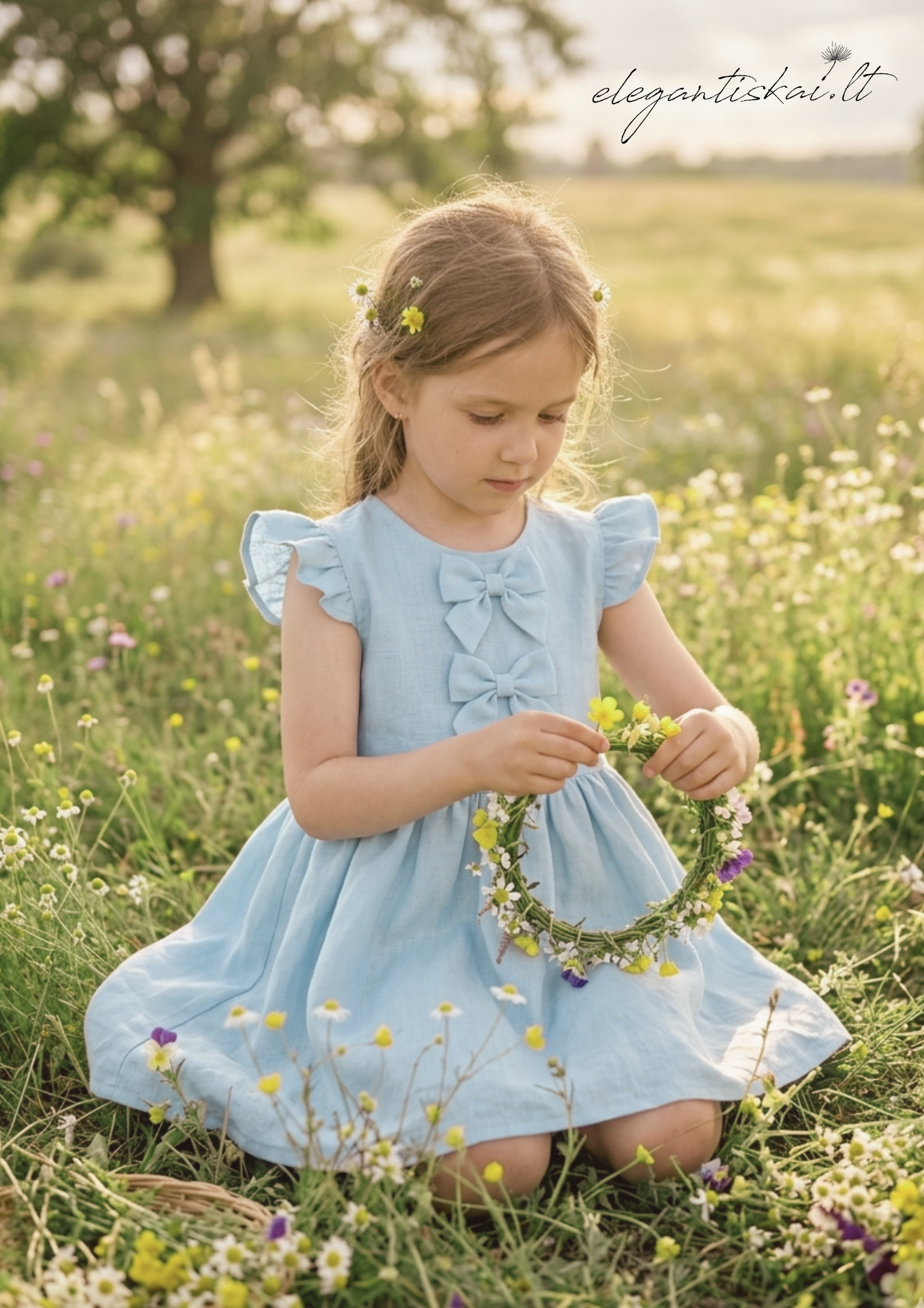 Romantic, playful, free model dress for a girl made of natural softened linen. The linen dress is decorated with elegant lace in the shoulder area, and it is fastened with several buttons in the chest. This linen dress is also suitable for a solemn occasion, for example, a christening, and any summer celebration. Linen is a breathable fabric, so linen dresses are the perfect outfit for hot weather. Linen clothes are natural, suitable for people with allergies, especially children.