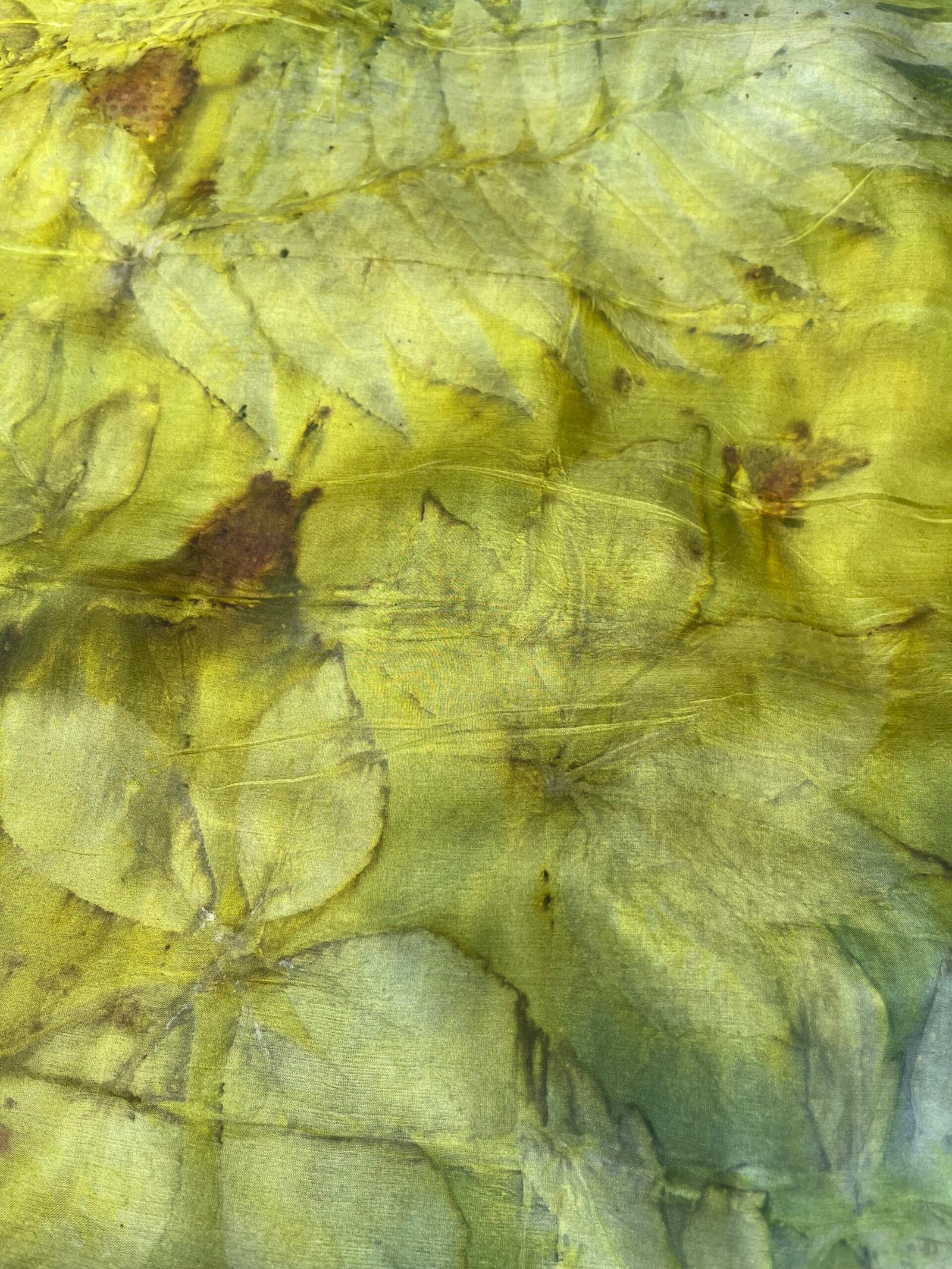 The scarf is dyed with natural plants and silk dyes. This unique, one-of-a-kind, handmade piece is an embrace of colors, natural energy and a gust of positive thoughts of the creator!