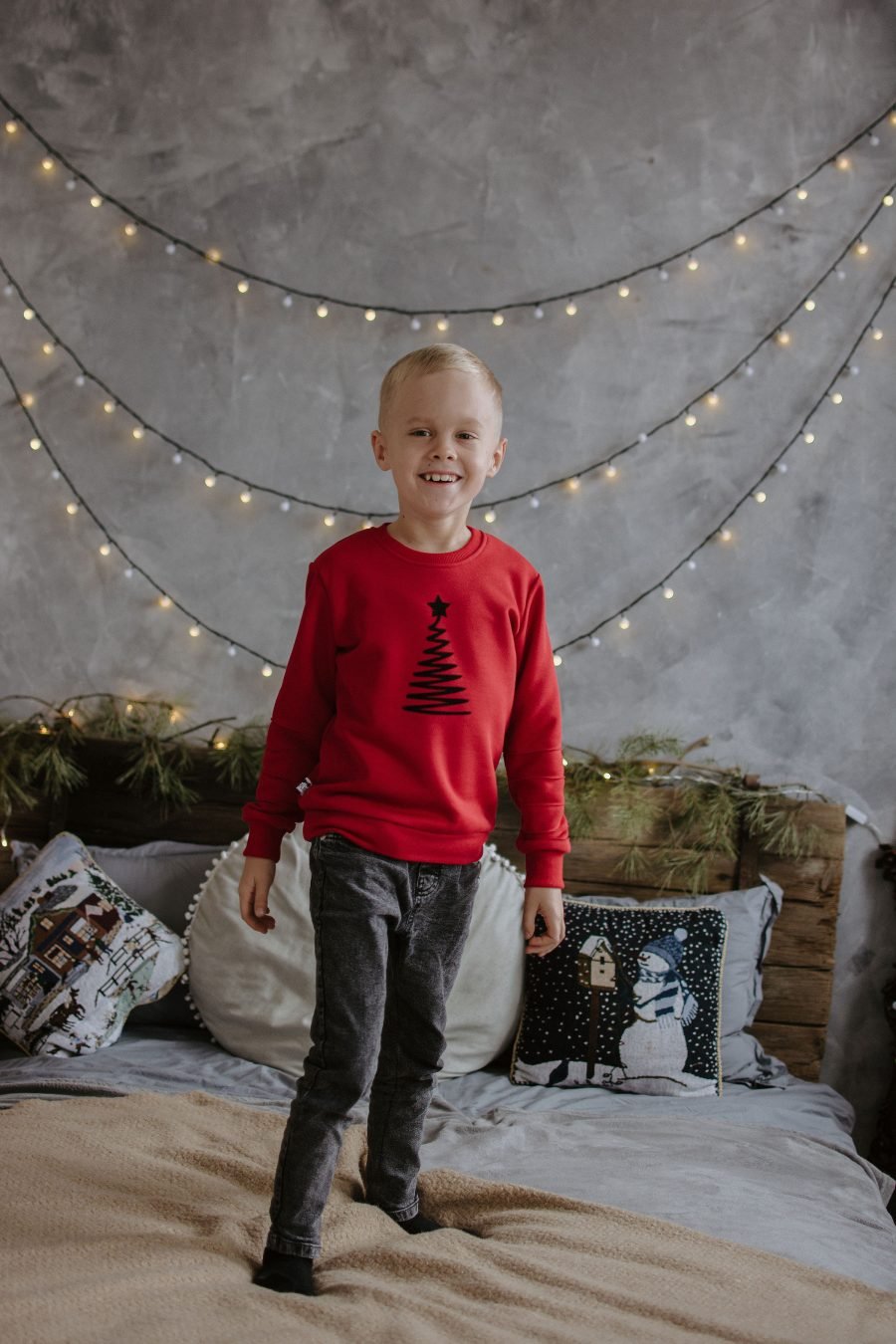 Sweater for girls and boys made of natural fabric with a Christmas tree. This is a festive outfit for every day as you look forward to Christmas. Such a gorgeous sweater is in the mood for the holidays and, most importantly, ideal for Christmas photo shoots. The whole family with such an outfit will bring a lot of joy to the children and give a lot of festive photos.